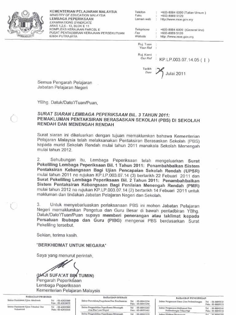 Surat siaran pelaksanaan pbs 3. Surat Pekeliling Lembaga Peperiksaan Bil 12014 Penambahbaikan PBSpdf - Google Drive. Jadi gaji mesti nak kira 10hb bukan 1hb.